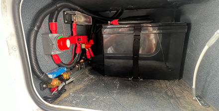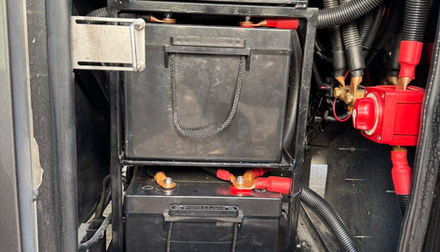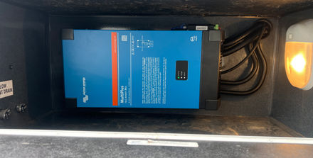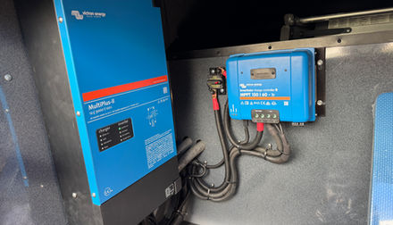After removing all of the existing 1000 Watt inverter, batteries and wiring and because of the limited space on the vehicle, we installed a Victron 2000 Watt Compact inverter, 2 x 300Ah Lithium Batteries and 800 Watts of Solar Panels to maintain and guarantee the battery bank was always charged and ready for use.