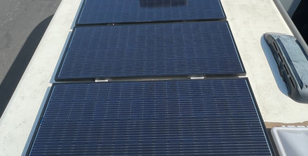For this project, our client wanted a full Solar Panel system on a new Newmar Class A Coach because it did not include solar panels. The RV was improved with a vaulted ceiling in the bedroom area which created a large elevated area on the roof which made installing solar panels on the roof very difficult and also limited the number of solar panels that could be installed.
